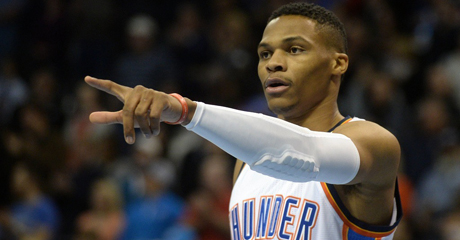 雷霆队首发阵容:维斯布鲁克、罗布森、杜兰特、伊巴卡、亚当斯