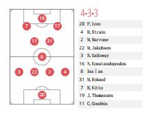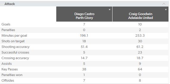 结合到个人数据上,珀斯的卡斯特罗是球队在进攻中的组织核心。卡斯特罗在边路活动频繁,这另防守球员在防守时经常出现盯人不紧的情况,当边路受到盯防后,卡斯特罗又会向中路靠近变为前腰,灵活的跑位是球员的特点,但脚下过于黏球也会在进攻中耽误机会。