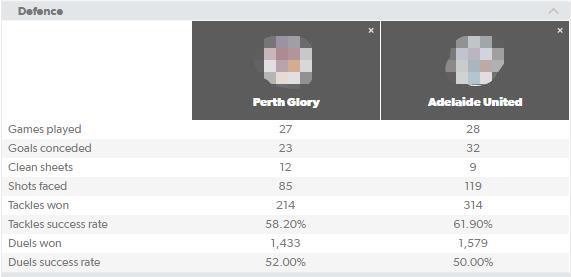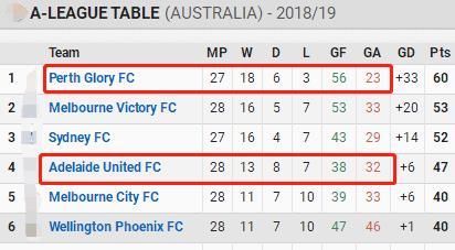 珀斯-阿德莱德两支球队在常规赛交锋三次,珀斯光荣在三场比赛中两胜一平保持不败。双方在三场比赛中共产生四个进球,进球效率一般。