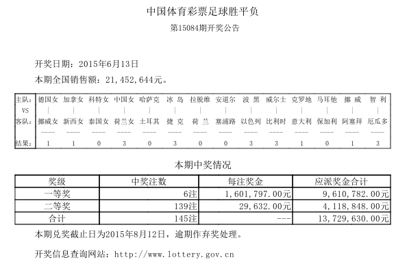 开奖公告