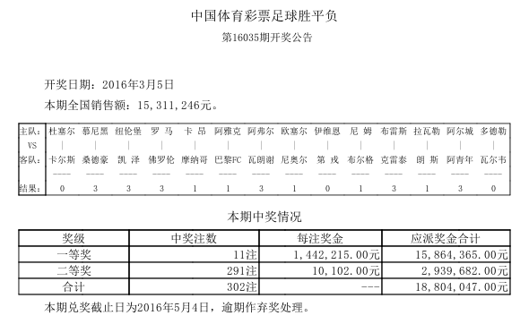 开奖公告
