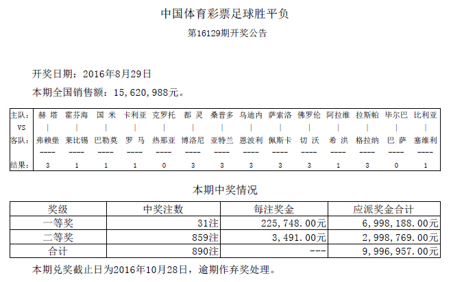 开奖公告