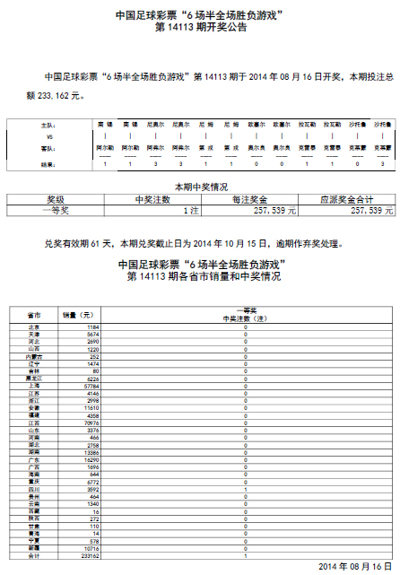 开奖公告