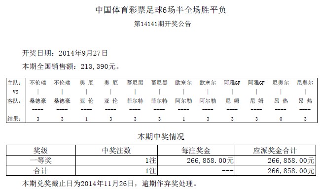 开奖公告