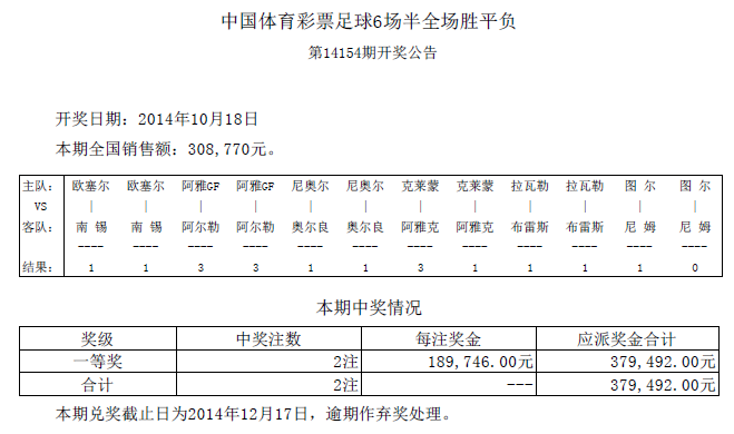 开奖公告