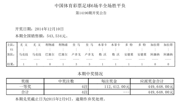 开奖公告