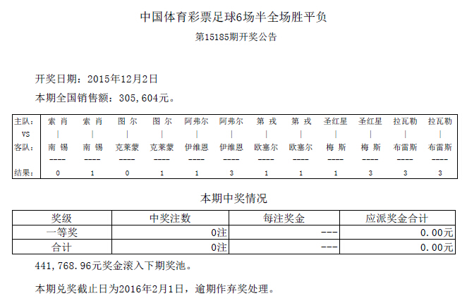 开奖公告