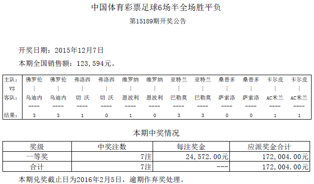 开奖公告