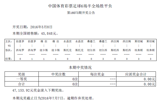开奖公告
