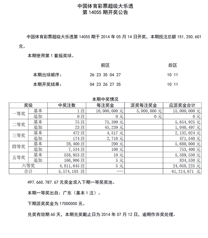 开奖公告