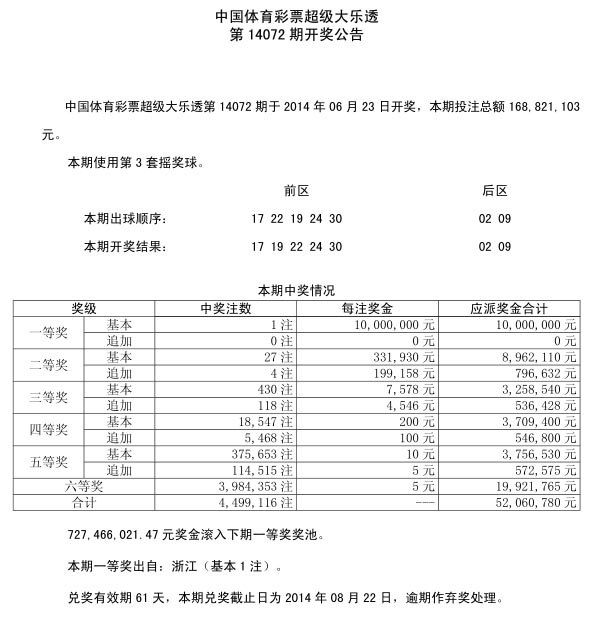 开奖公告