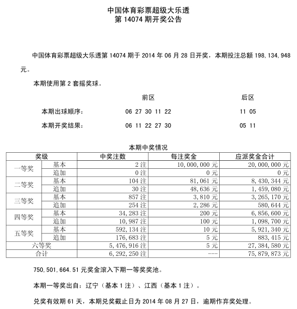 开奖公告
