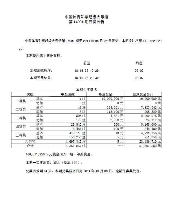 开奖公告