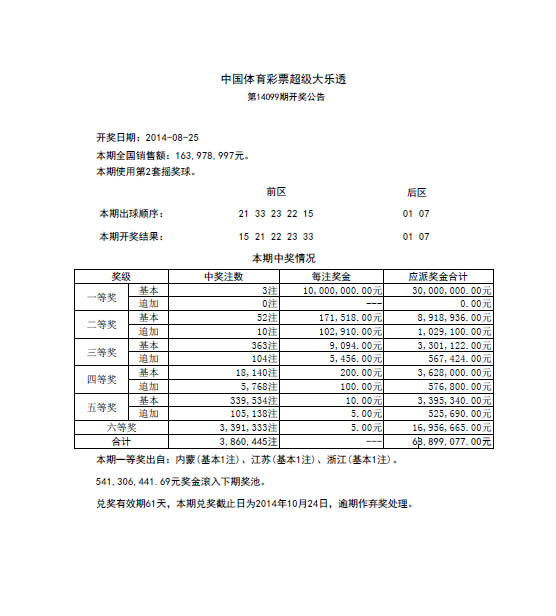 开奖公告
