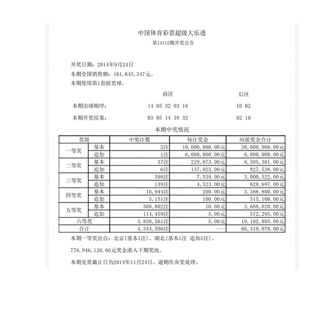 开奖公告