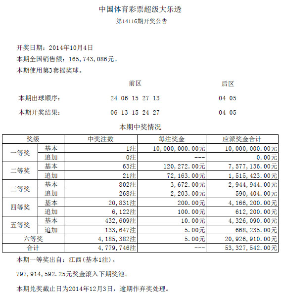 开奖公告