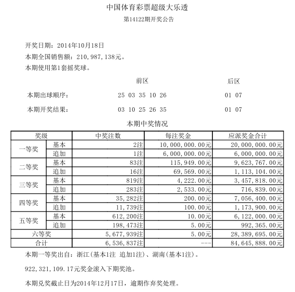 开奖公告