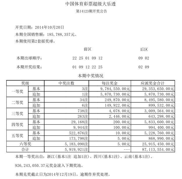 开奖公告