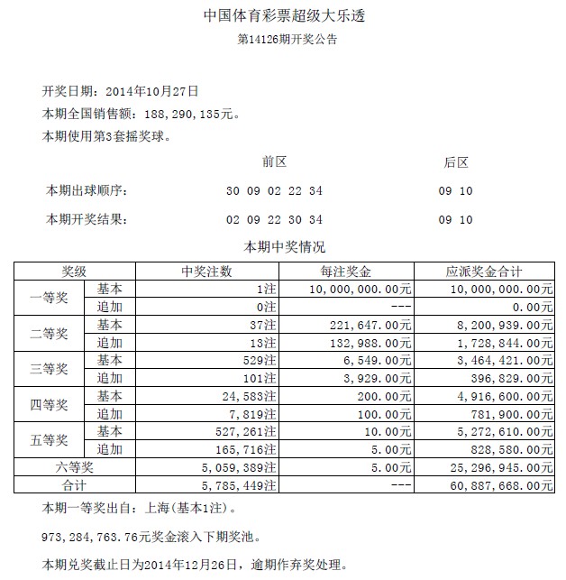 开奖公告