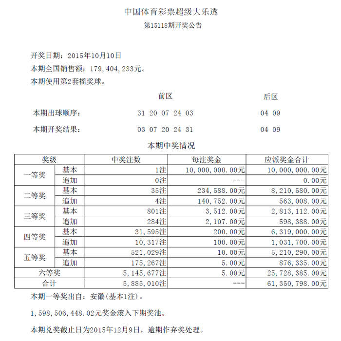 开奖公告