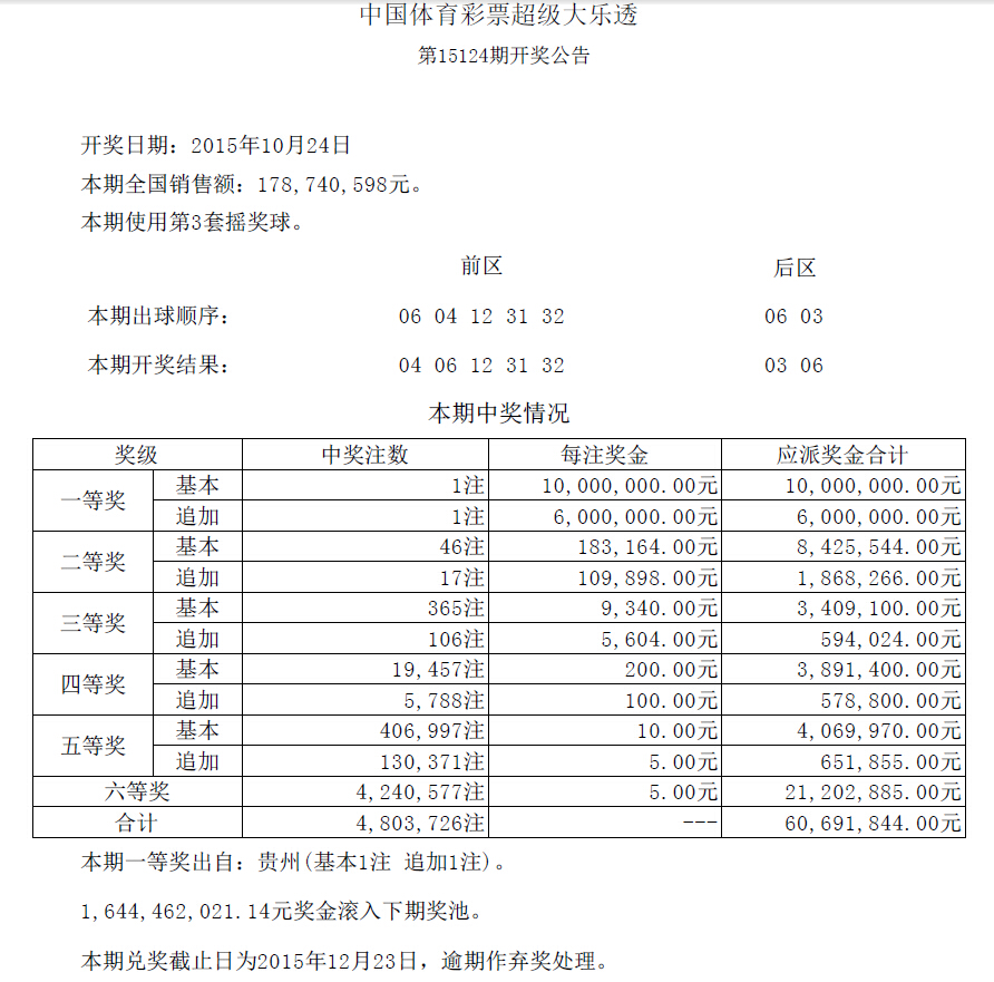 开奖公告