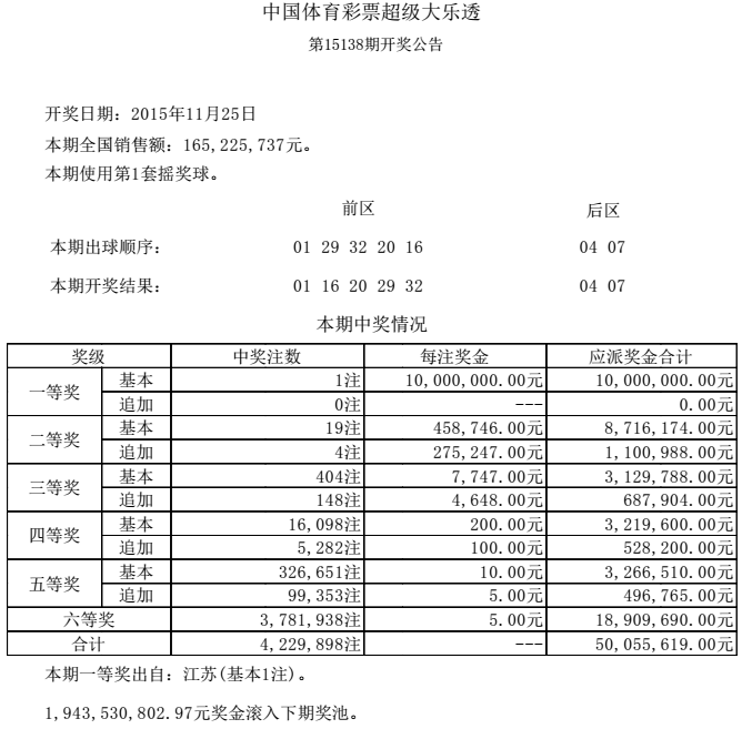 开奖公告