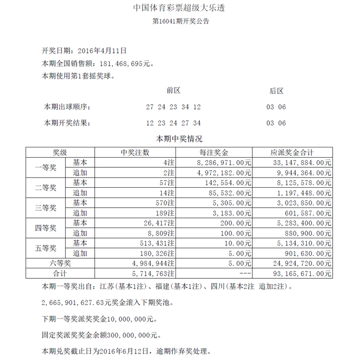 开奖公告