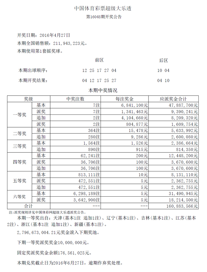 开奖公告