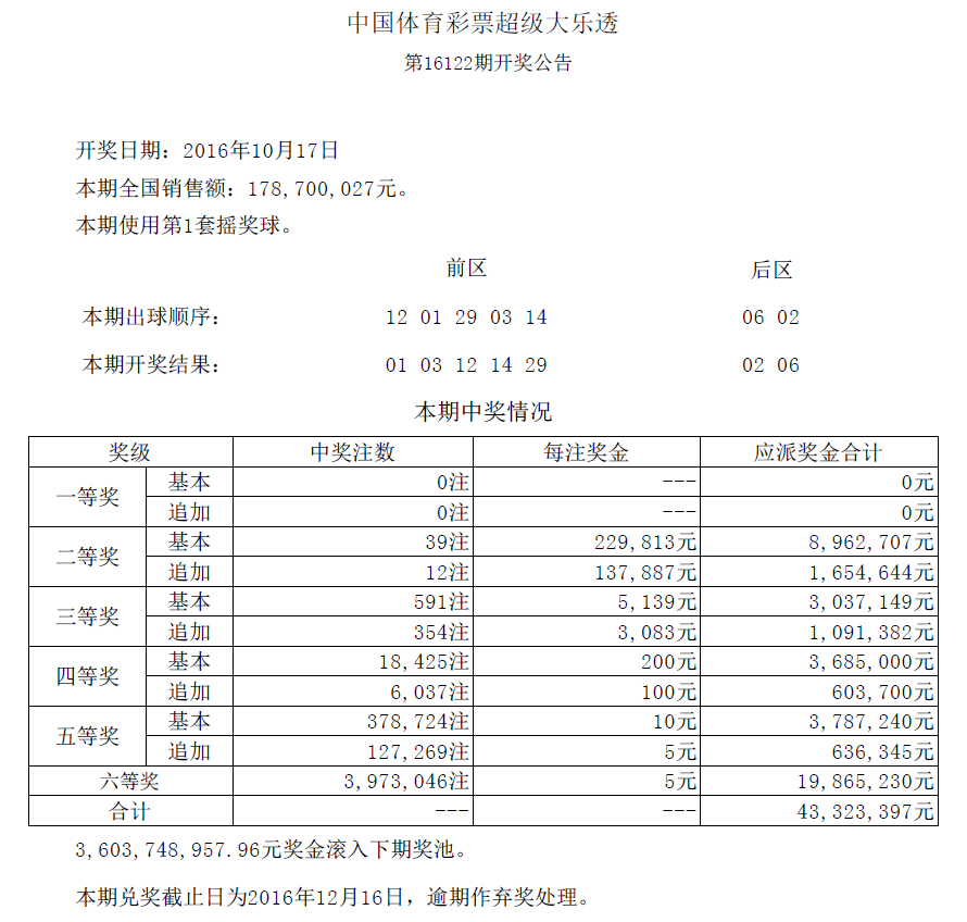 开奖公告