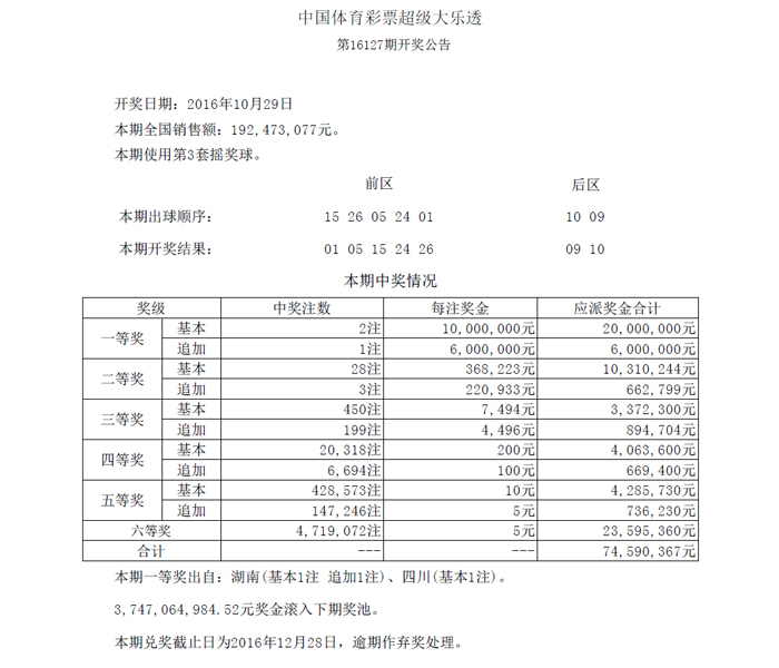 开奖公告