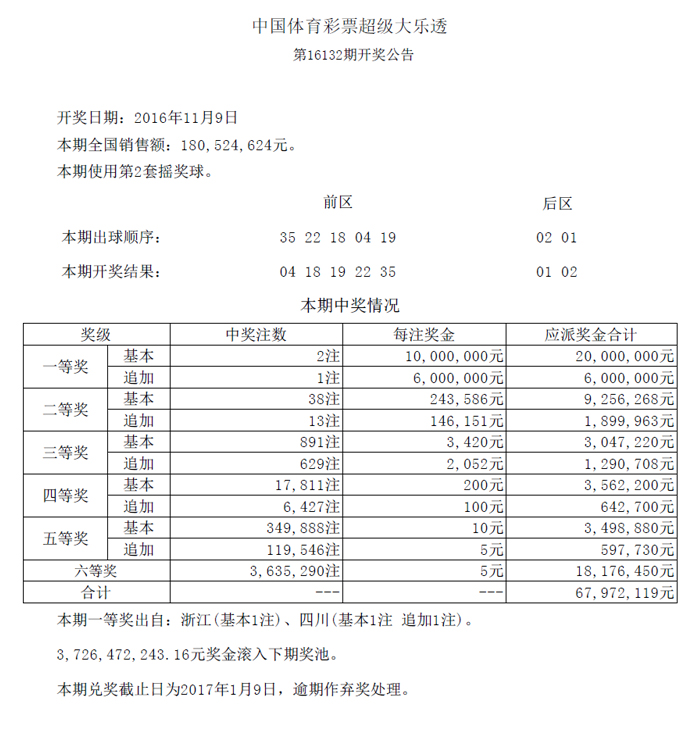 > 开奖公告