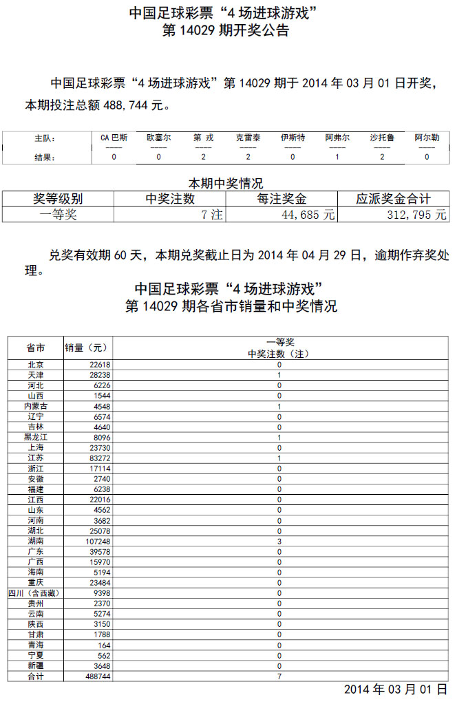 开奖公告