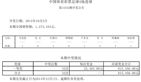开奖公告