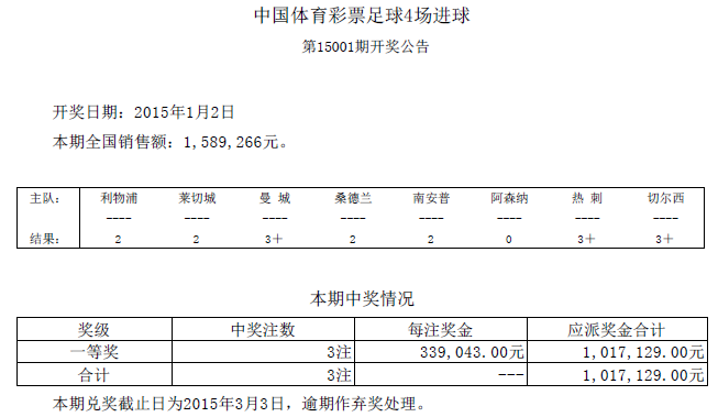 4场进球彩