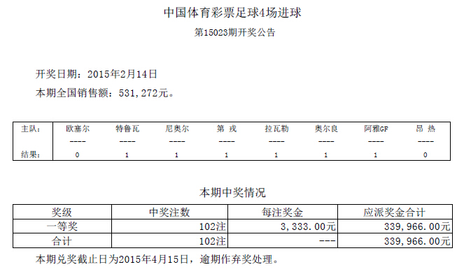 4场进球彩