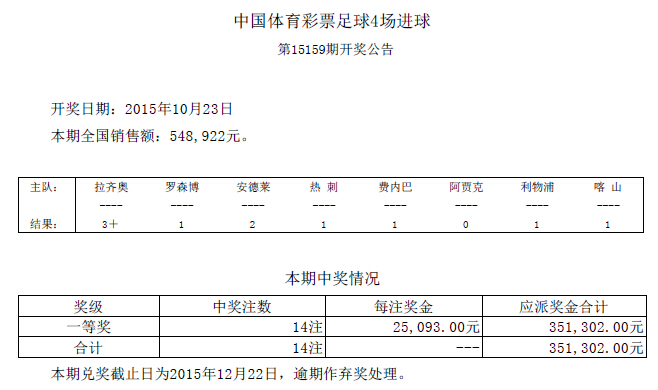 4场进球彩