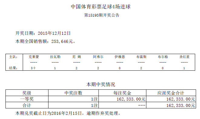 开奖公告