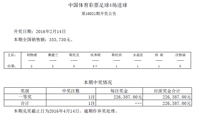 开奖公告