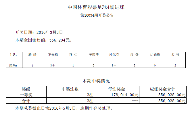 开奖公告