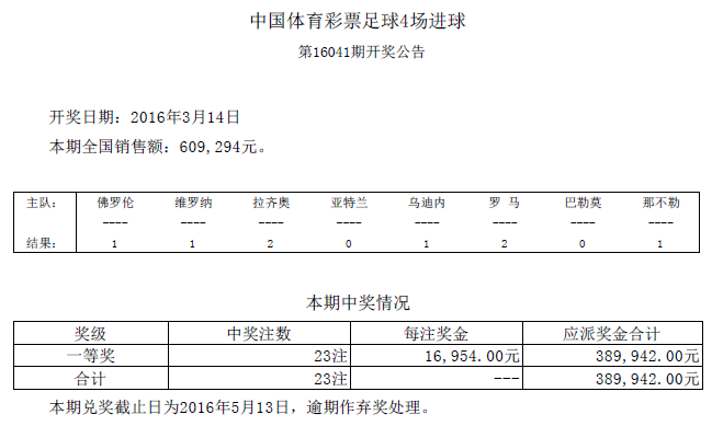 开奖公告
