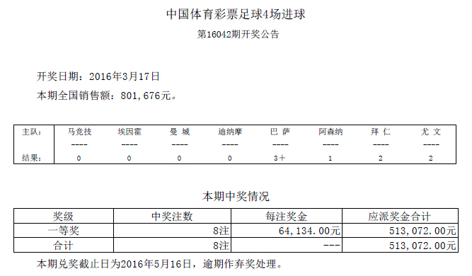 开奖公告