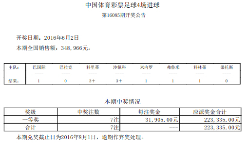 开奖公告