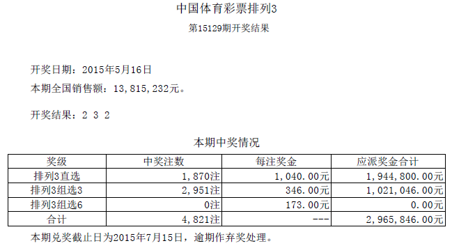 开奖公告