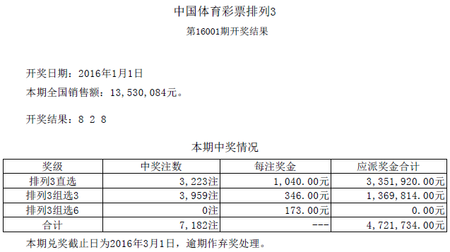 开奖公告