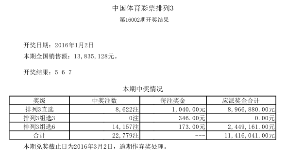 开奖公告