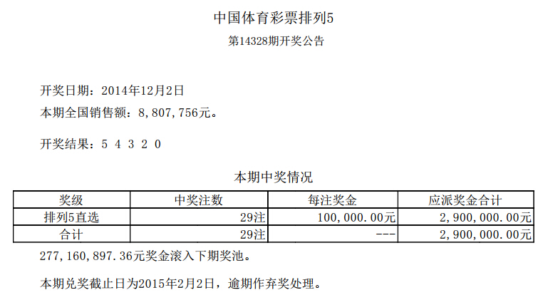 开奖公告