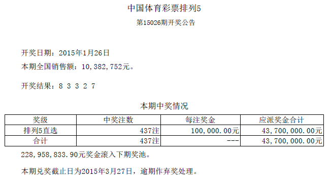 开奖公告