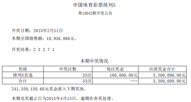 开奖公告