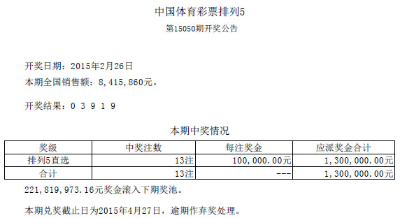 开奖公告
