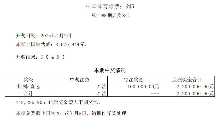 开奖公告